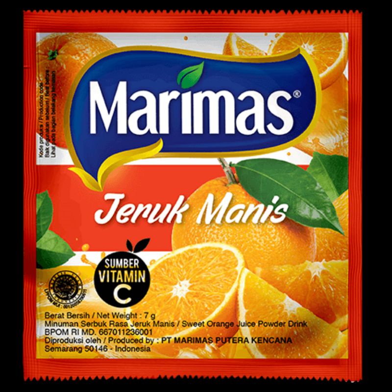 Marimas, minuman serbuk buah pilihan asli Indonesia dan kaya vitamin serta mineral. Lengkap dengan 21 rasa, Marimas hadir sebagai pilihan minuman yang tepat bagi anda yang menginginkan kesegaran dan menghilangkan dahaga, dapat menjadi teman pelengkap anda disaat beraktivitas ,serta bersantai dalam setiap suasana.