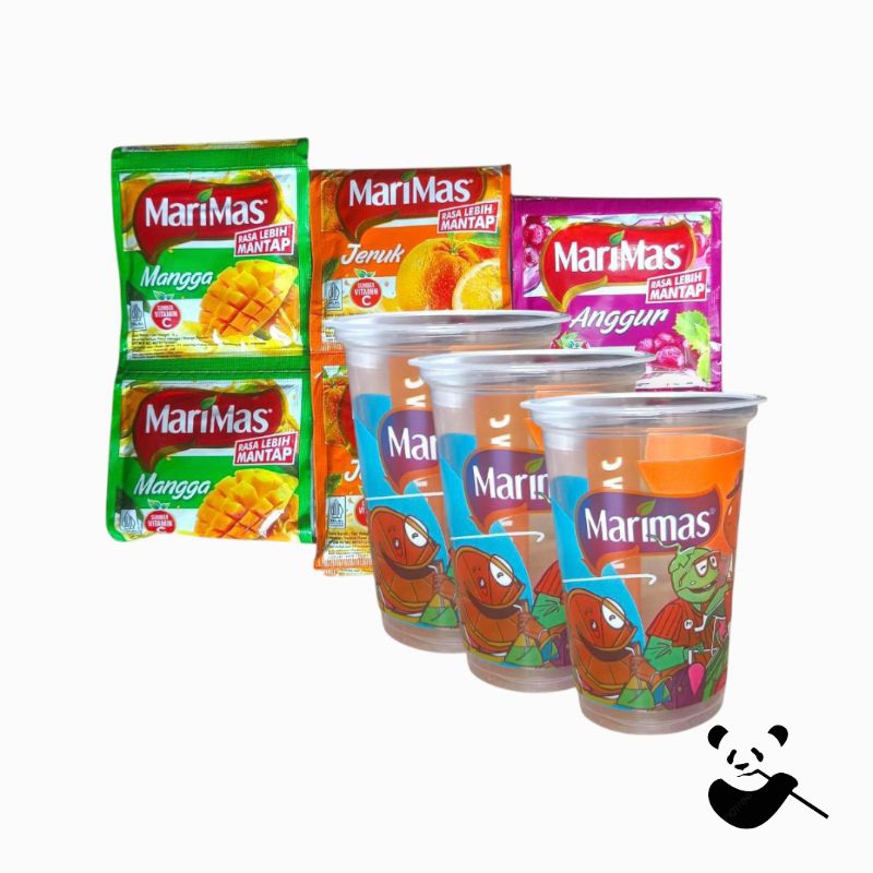 Marimas paket cup adalah paket yang berisi Marimas serbuk rasa buah dengan cup (gelas) yang siap digunakan untuk membuat minuman. Paket ini terdiri dari 3 renceng (Marimas Jeruk, Mangga, Anggur) dan 30 Pcs cup, sehingga praktis untuk membuat banyak minuman sekaligus.