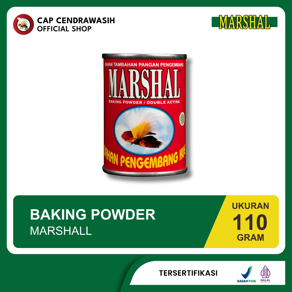 Baking Powder Marshal (Kaleng) berguna untuk mengembangkan serta memberikan tekstur pada kue, bolu, adonan sehingga dapat mengembang dan memberikan bentuk yang lebih menarik.
