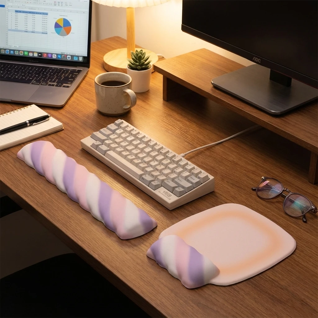Marshmallow Shape Soft Memory Foam Mouse Pad with Wrist Rest Keyboard Pad Anti-slip Wrist Support Office Gamer Computer Desktop
