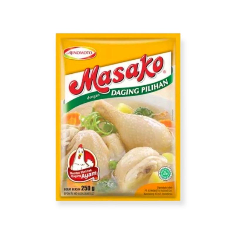 Masako, bumbu ekstrak daging ayam dan sapi dibuat dengan perpaduan tepat antara daging segar berkualitas, bumbu dan rempah pilihan yang memberikan rasa dan aroma masakan dari daging asli sama seperti kaldu buatan dirumah.