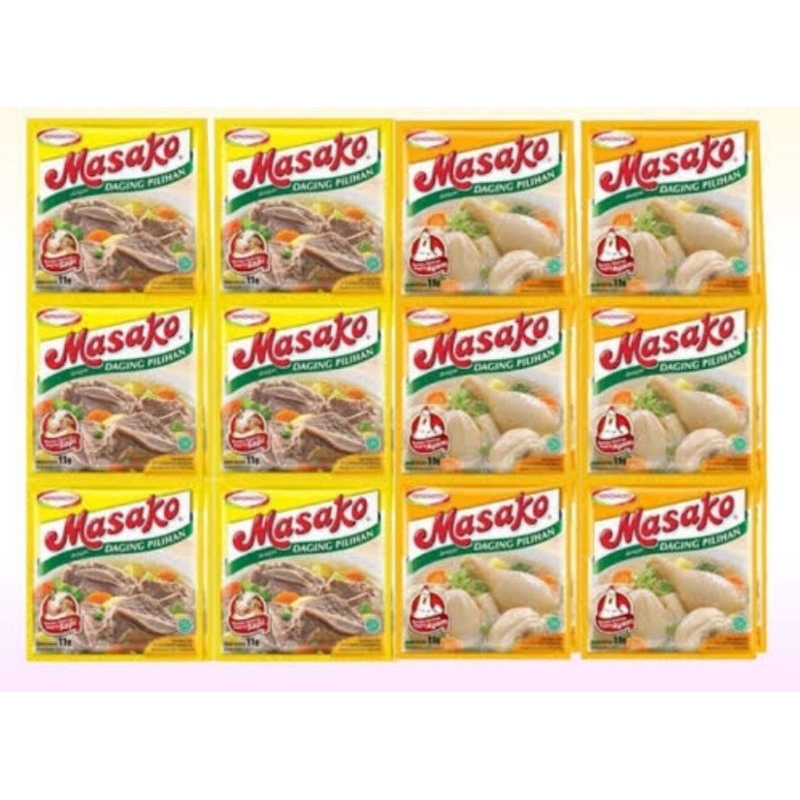 Masako Rasa Ayam 9g adalah bumbu kaldu spesial yang dibuat dengan daging ayam asli pilihan, dengan ekstrak daging lebih mantap dan rasa asin, gurih, dan bumbu yang lebih seimbang. Diolah dengan teknologi tinggi dan higienis hingga menghasilkan bumbu kaldu yang berkualitas untuk kaldu buatan di rumah