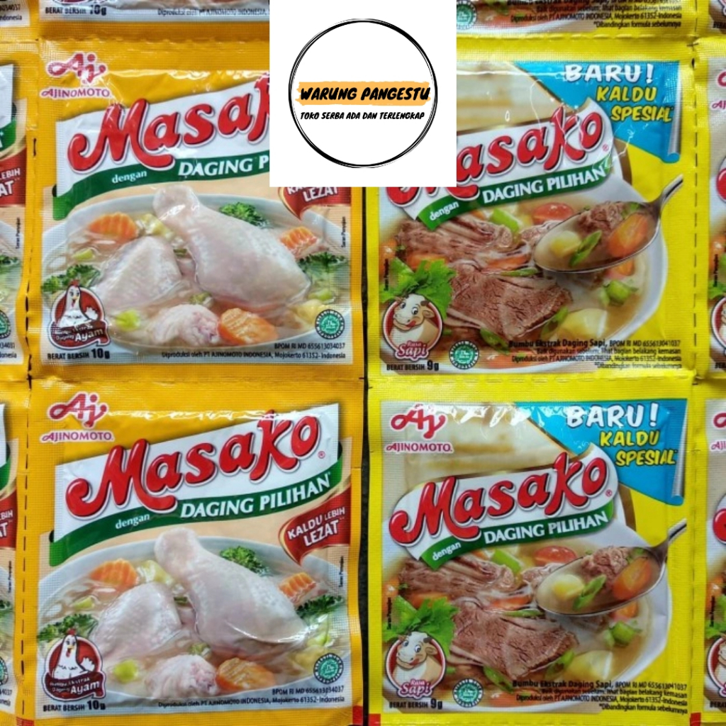 Dalam satu kemasan Masako Bumbu Ekstrak Daging Sapi atau Ayam, terdapat kandungan ekstrak daging sapi atau ayam alami tanpa tambahan bahan pengawet. Cocok digunakan sebagai penyedap pada berbagai jenis masakan seperti sop, tumis, sate, dan masih banyak lagi.
