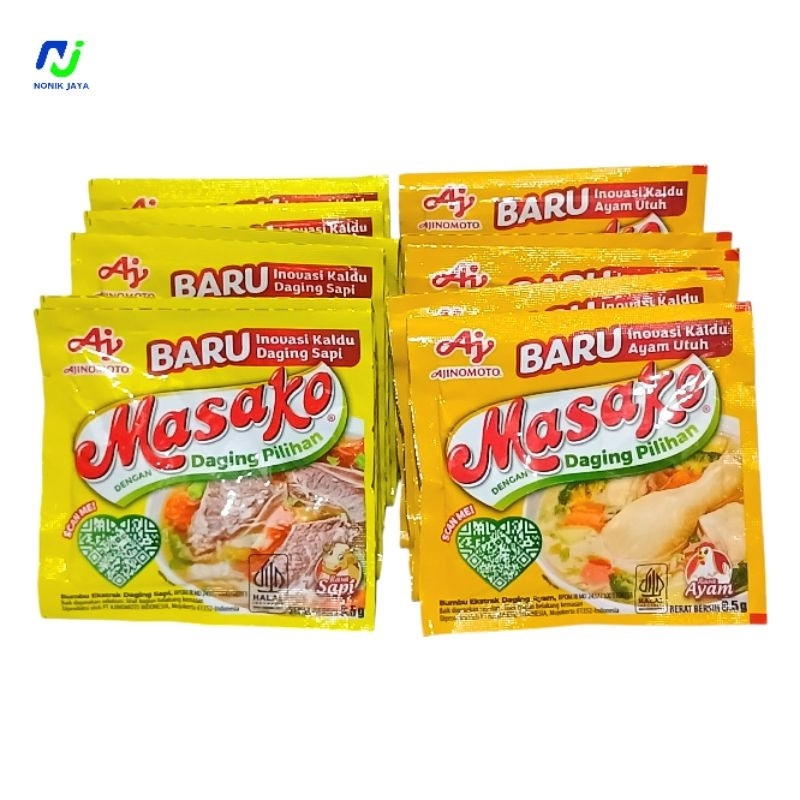 Masako ayam dan sapi adalah bumbu kaldu yang terbuat dari daging ayam dan sapi asli, bumbu, dan rempah pilihan.