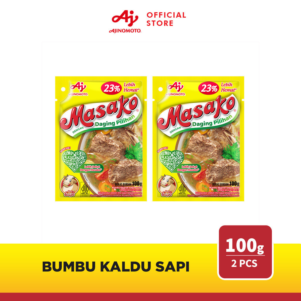 Detail produk dari Masako® Bumbu Kaldu Penyedap Rasa Sapi 100g (2 pcs) Masako® bumbu ekstrak daging ayam, dibuat dengan daging ayam yang berkualitas serta kombinasi bumbu dan rempah pilihan. Menghasilkan rasa kaldu yang lezat, seperti kaldu buatan sendiri di rumah, untuk masakan sehari-hari dengan cara yang mudah dan praktis. Masako® sajikan #KenikmatanHakiki untuk keluarga, makanan jadi makin enak dan lezat, jadi pingin tambah lagi! Kandungan garam/ natrium 520 mg per sajian Sesuai dengan angka kecukupan gizi yang direkomendasikan yaitu