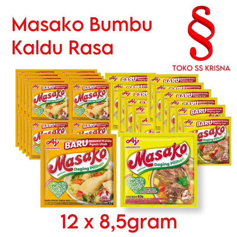Masako Bumbu Kaldu Rasa Ayam/Sapi 1 Renceng (12x8,5gr)