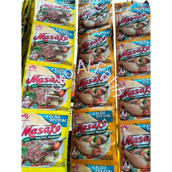 Masako Kaldu Ayam dan Sapi 1 Renceng isi 12 bungkus x 9 gr.