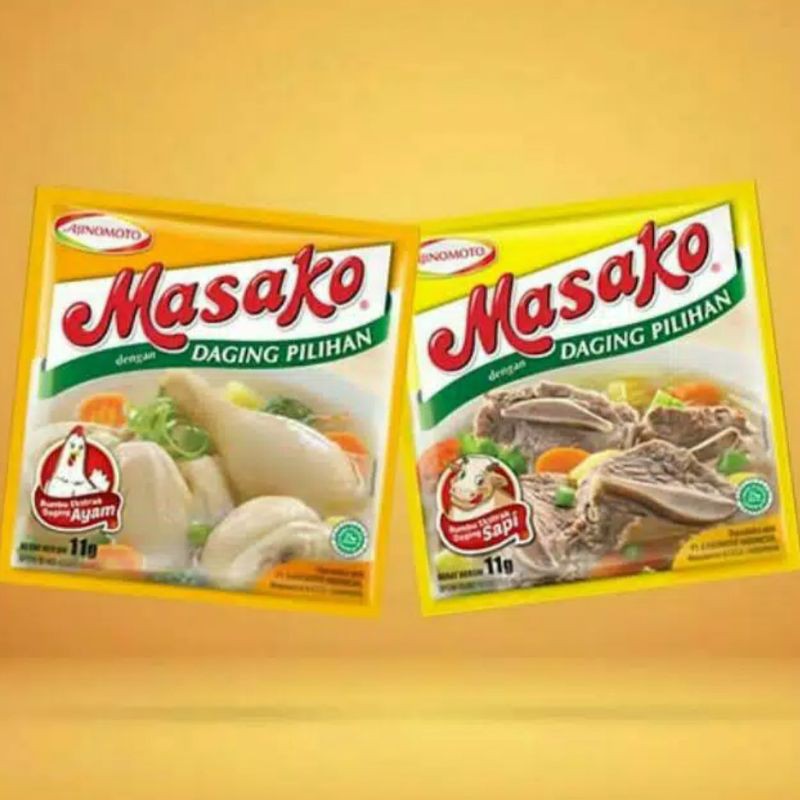 MASAKO adalah bumbu kaldu dari daging ayam/sapi asli yang telah diformulasikan dengan racikan bumbu yang spesial dan berkualitas sehingga membentuk suatu bumbu kaldu yang lezat.