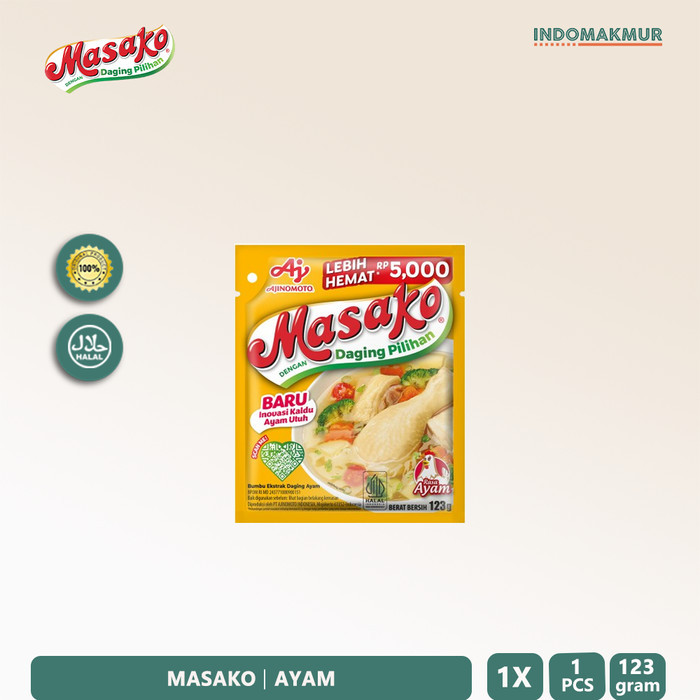 Masako adalah Bumbu Kaldu Penyedap yang dibuat dengan perpaduan sempurna antara daging segar berkualitas, bumbu, dan rempah pilihan sehingga secara praktis dapat menyempurnakan kelezatan masakan dengan rasa dan aroma dari daging asli seperti kaldu buatan sendiri.