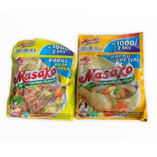 Penyedap Rasa Kaldu Sapi dan Ayam brand Masako kemasan Sachet Renceng.