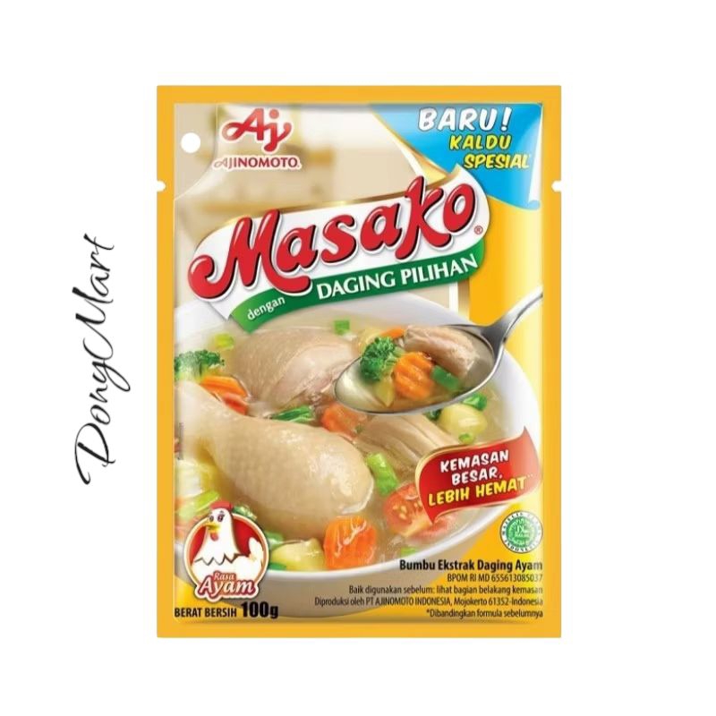 Masako, Bumbu Kaldu Penyedap dibuat dengan perpaduan sempurna antara daging segar berkualitas, bumbu dan rempah pilihan. Sehingga secara praktis menyempurnakan kelezatan masakan Anda sehari-hari dengan rasa dan aroma dari daging asli sama seperti kaldu buatan di rumah.