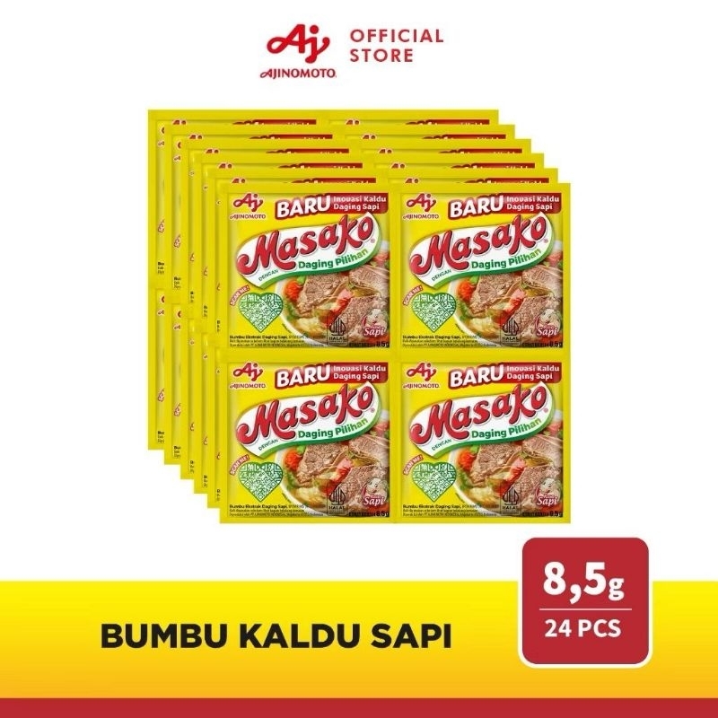 Masako Rasa Sapi 8.5g isi 24 pcs adalah bumbu kaldu penyedap rasa dengan kemasan praktis sachet, memudahkan penggunaan dan takaran pas untuk setiap masakan. Terbuat dari ekstrak daging sapi dan rempah pilihan, memberikan cita rasa gurih alami pada sup, semur, tumisan, dan nasi goreng. Cocok untuk kebutuhan dapur rumah tangga maupun usaha kuliner. Produk ini telah terdaftar di BPOM dan bersertifikat halal, menjamin kualitas dan keamanannya. Praktis, ekonomis, dan selalu siap membantu menyempurnakan rasa masakan sehari-hari Anda.