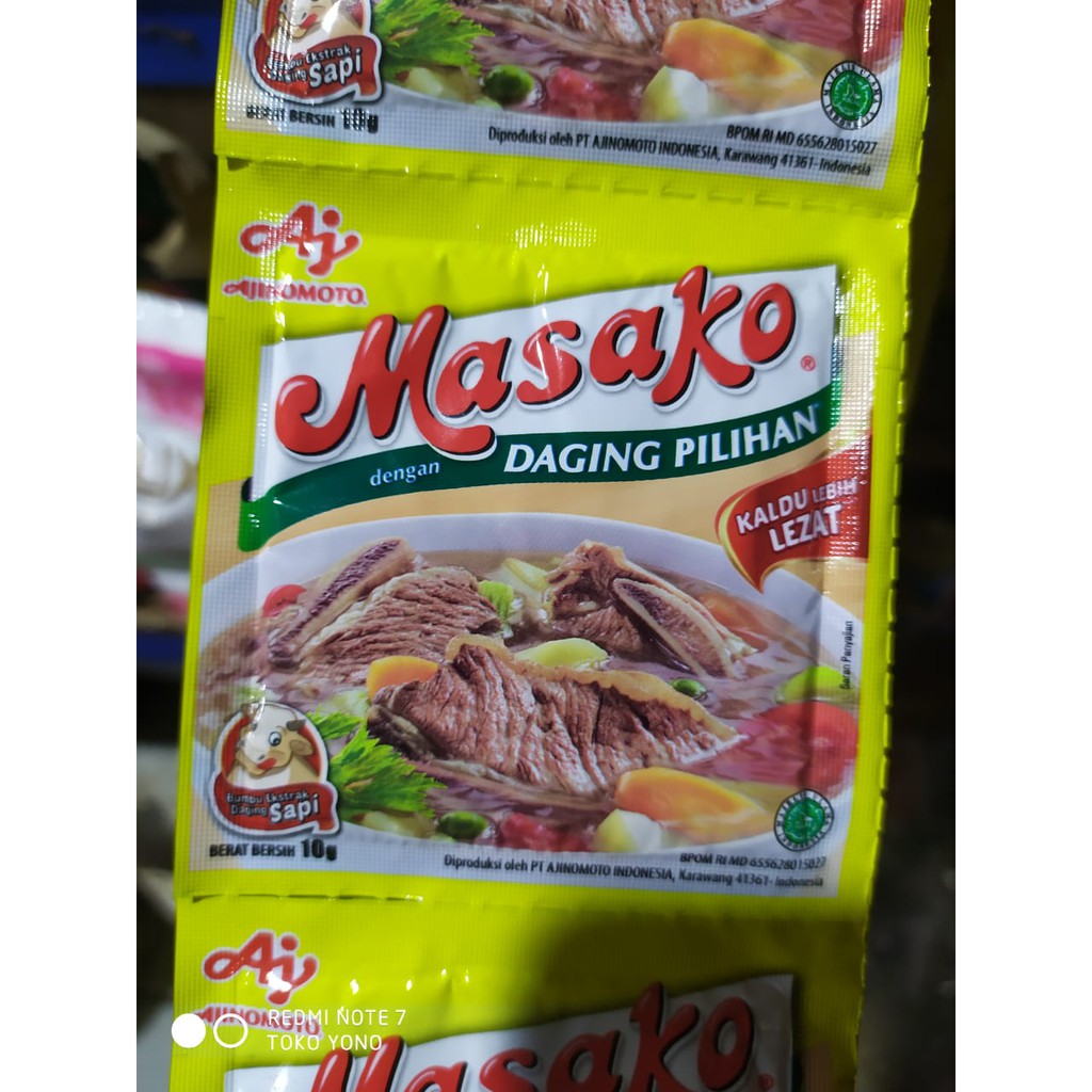 Masako rasa sapi per renceng isi 12 sachet, 1 sachet isi 11 gram. Ready stock ya bossku, silahkan diorder langsung.