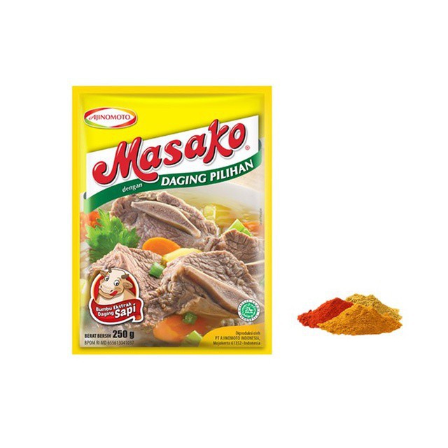 Masako® Bumbu Ekstrak daging Sapi, dibuat dengan perpaduan sempurna antara daging segar berkualitas, bumbu, dan rempah pilihan sehingga praktis menyempurnakan kelezatan masakan sehari-hari dengan rasa dan aroma dari daging asli sama seperti kaldu buatan di rumah.