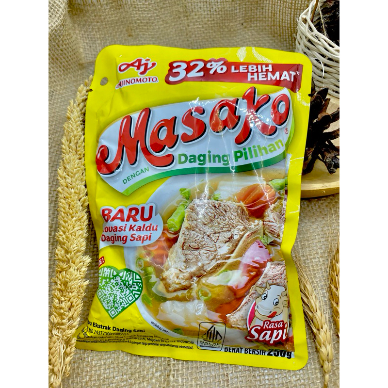 Masako Sapi 250gr adalah bumbu penyedap rasa berbentuk granule atau bubuk yang terbuat dari ekstrak daging sapi asli, garam, gula, serta rempah-rempah pilihan. Produk ini membantu menghadirkan cita rasa gurih khas kaldu sapi dalam berbagai masakan.