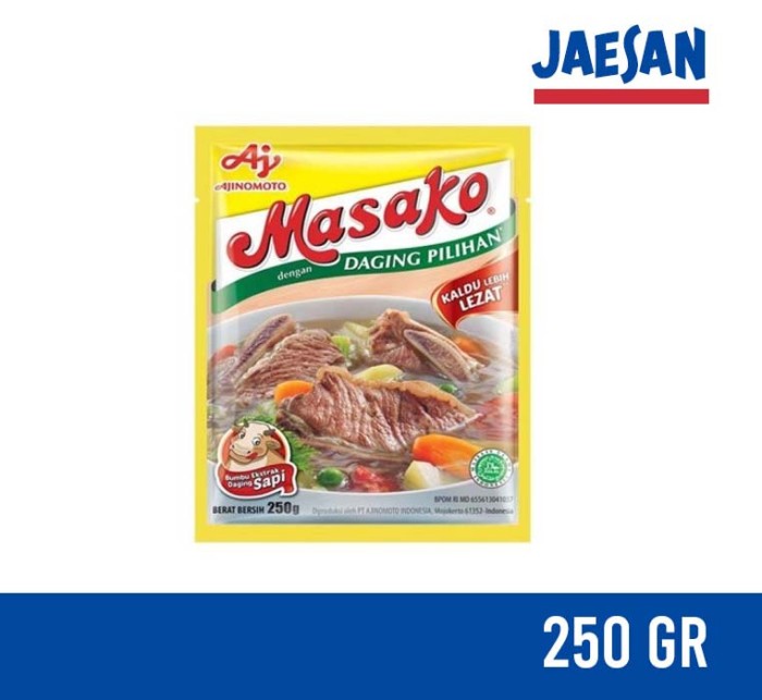 Masako kemasan 250g lebih ekonomis dengan isi yang lebih banyak memungkinkan Anda untuk memasak dalam jumlah besar. Cocok untuk rumah makan/restauran, katering, pedagang makanan, dan industri kecil