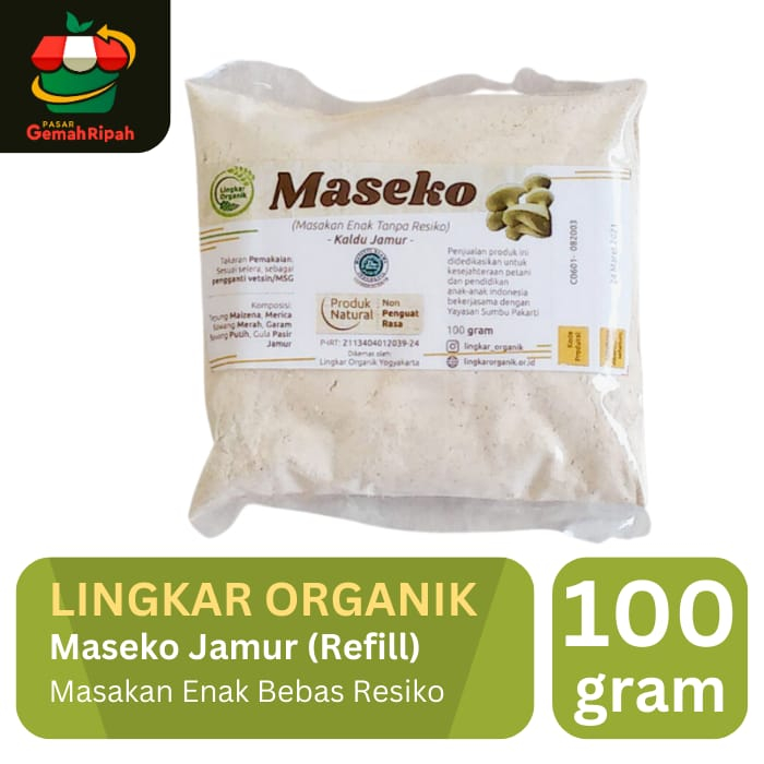 Kaldu bubuk Maseko (Masakan Enak Bebas Resiko) dibuat dari bahan-bahan alami, Non GMO, dan tentunya BEBAS MSG. Diproduksi oleh Lingkar Organik, Maseko menambah rasa sedap dan gurih untuk aneka masakan tumis dan kuah.