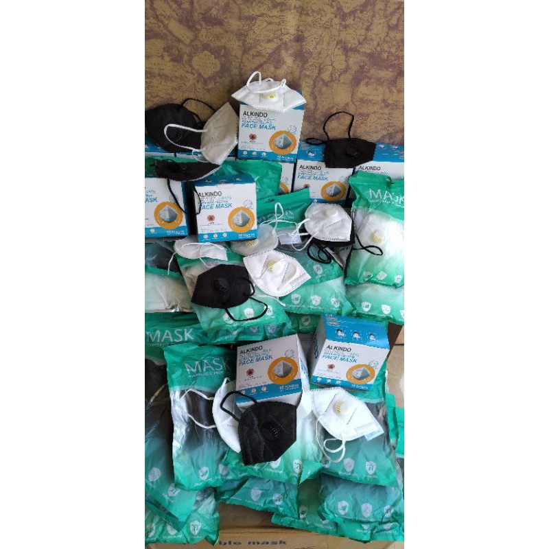Masker 5 ply KN95 Respirator Hitam & Putih.