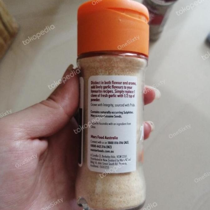 Tambahkan kedalam dan rasa pada masakan Anda dengan mudah dengan Bubuk Bawang Putih MasterFoods. Penuh dengan rasa bawang putih segar yang kuat, Bubuk Bawang Putih menambah rasa yang hidup pada masakan Anda. Gunakan setengah sendok makan Bubuk Bawang Putih saat resep membutuhkan satu siung. Untuk sesuatu yang berbeda, buat roti bawang putih Anda sendiri di rumah.