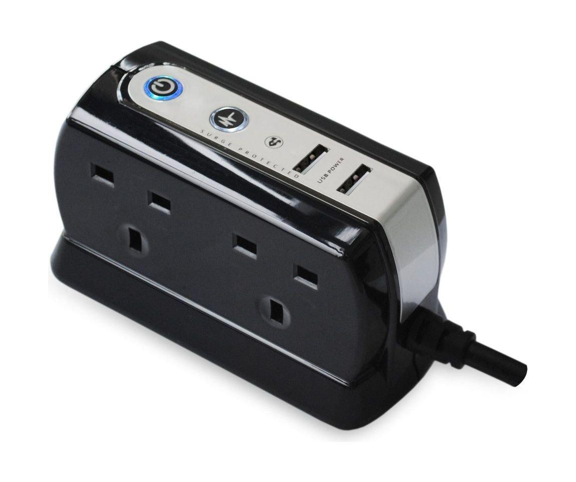 Masterplug usb charging surge protected 2m extension lead power block with 4 sockets -...