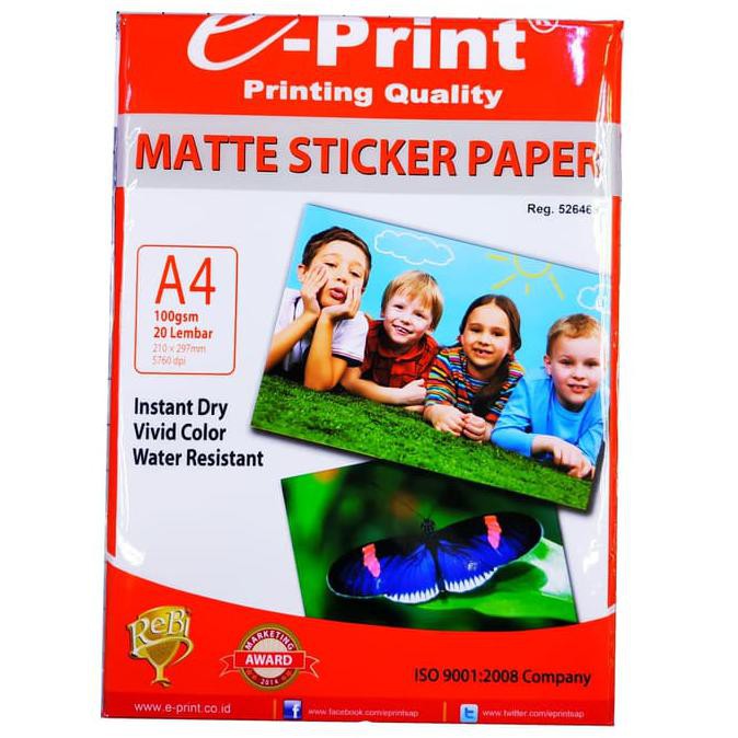 Matte Sticker Paper e-Print A4 100gsm isi 20 lembar Kertas Print