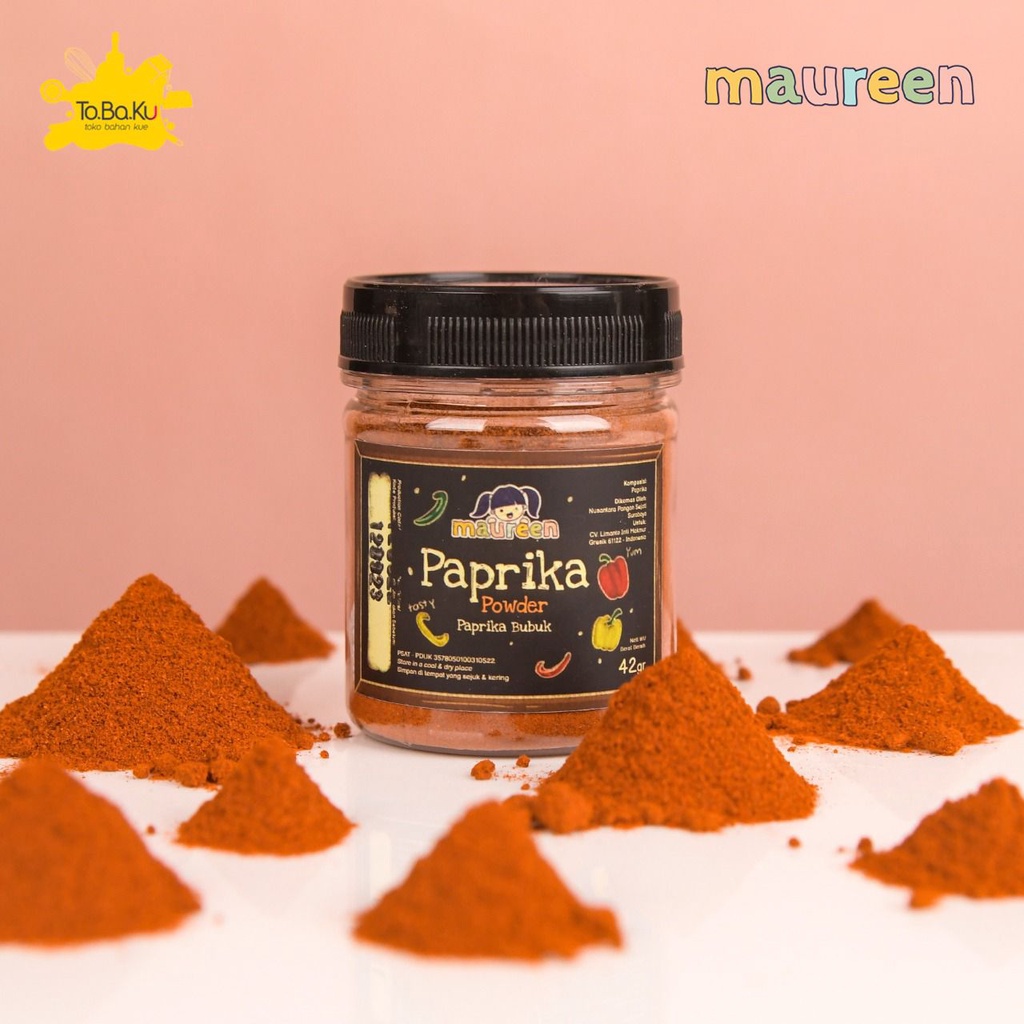 Maureen Bubuk Paprika (Paprika Powder) dibuat dari 100% bahan murni tanpa campuran bahan kimia, pengawet, pewarna, maupun MSG sehingga aman untuk dikonsumsi berbagai kalangan usia.