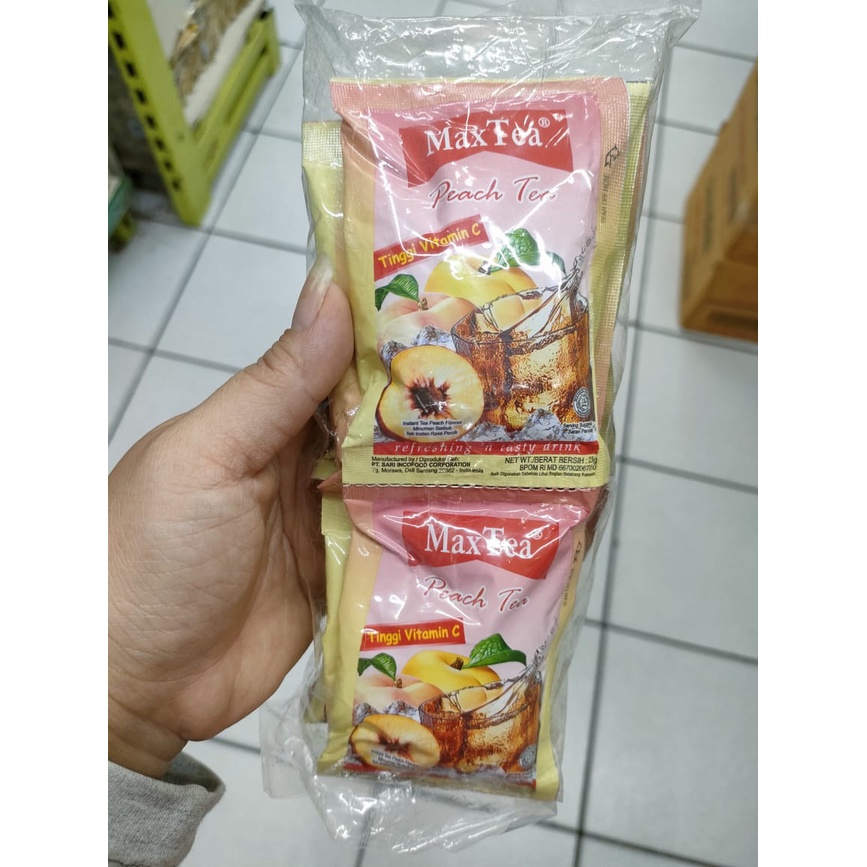 MAX TEA varian rasa Peach TeaSegar dan nikmat di minum dingin atau panas1 renceng isi 10 Pcs Pengiriman dengan plastik