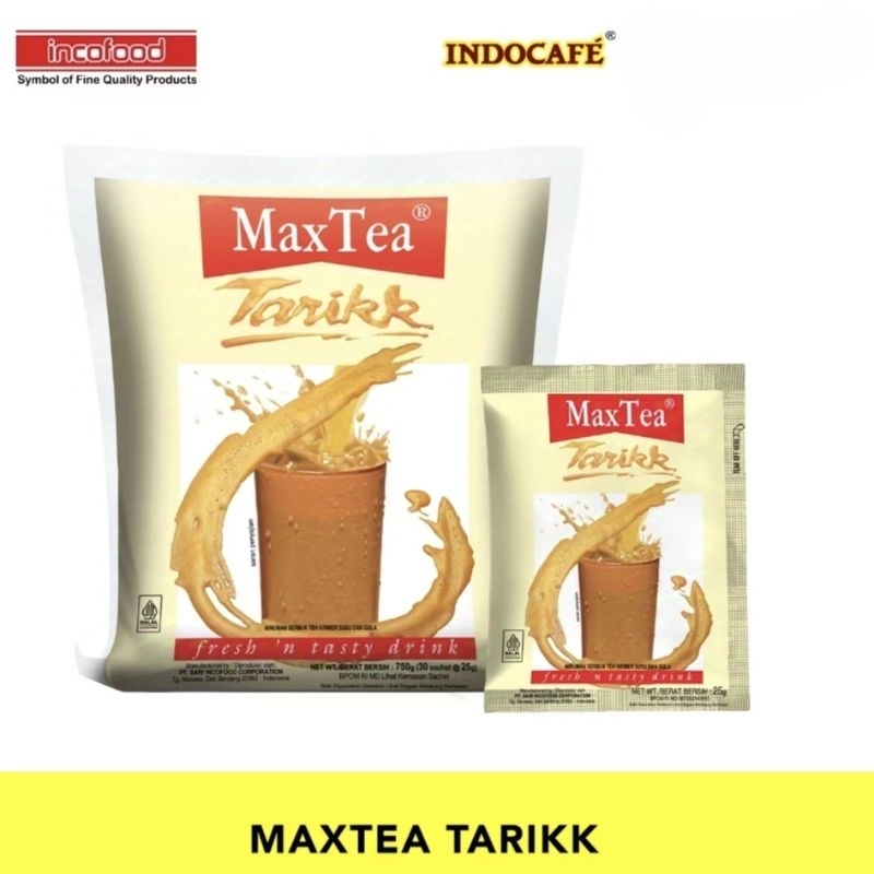 MaxTea Tarikk adalah minuman teh ,susu, dan krimer dan gula dengan buih yang lembut di bagian atasnya. Aroma dan rasa yang pas untuk minuman teh tarikk.
