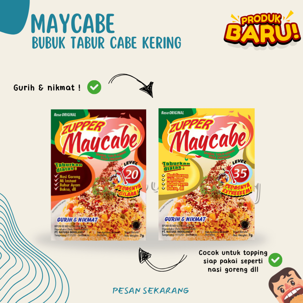 Dengan Maycabe Cabe Bubuk, Anda dapat dengan mudah menambahkan rasa pedas yang nikmat ke dalam setiap hidangan, menjadikannya pilihan ideal bagi pecinta makanan pedas.