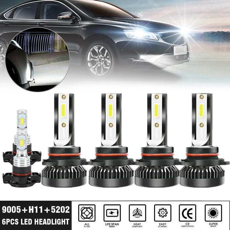 Mayitr 6 шт. 9005 + H11 + светодиодный светодиодные фары 5202 K чистый белый свет Автомобильные противотуманные фары для Chevy Silverado 6000 1500 2500 3500-2007