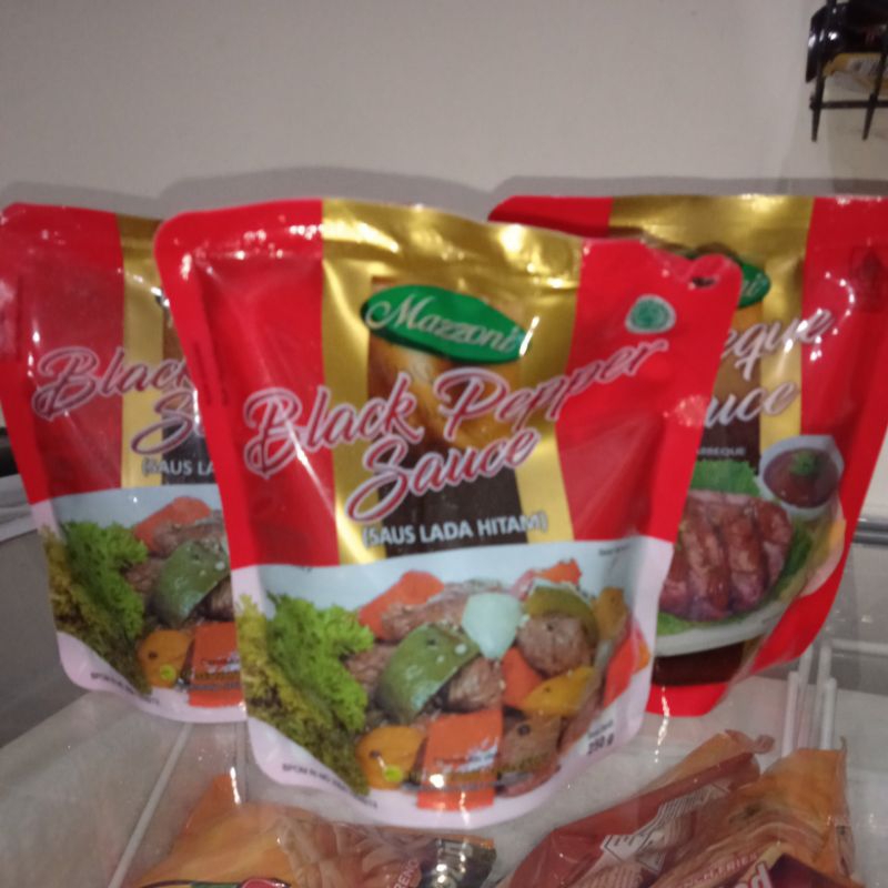 Mazzoni sause adalah sause kemasan 250 gr dengan varian rasa BBQ, blackpepper dan chili sause