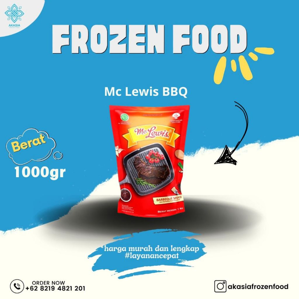 Penjelasan Kemasan: Mc Lewis BBQ Sauce 1kg dikemas dalam kemasan praktis dan aman yang menjaga kualitas dan kesegaran saos. Dengan ukuran kemasan 1kg, Anda bisa menikmatinya lebih lama, cocok untuk kebutuhan keluarga, acara BBQ, atau usaha kuliner.