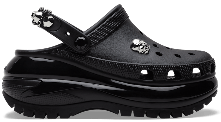 The seriously eye-catching Classic Mega Crush Clog gets an edgy makeover with the Mega Crush Rebel Rebel Clog. Featuring enhanced rubber treads and updated detailing around the outsole, this platform is ready to take the edginess up a notch. Mega Crush Rebel Rebel Clog Details: Uniquely punk aesthetic and embellishments Unique 2.4-inch / 6.13cm height, measured from floor to heel rest Updated, enhanced rubber tread Textured detailing around the heel, toe box and collar Customizable with Jibbitz™ charms Iconic Crocs Comfort™: Lightweight. Flexible. 360-degree comfort.
