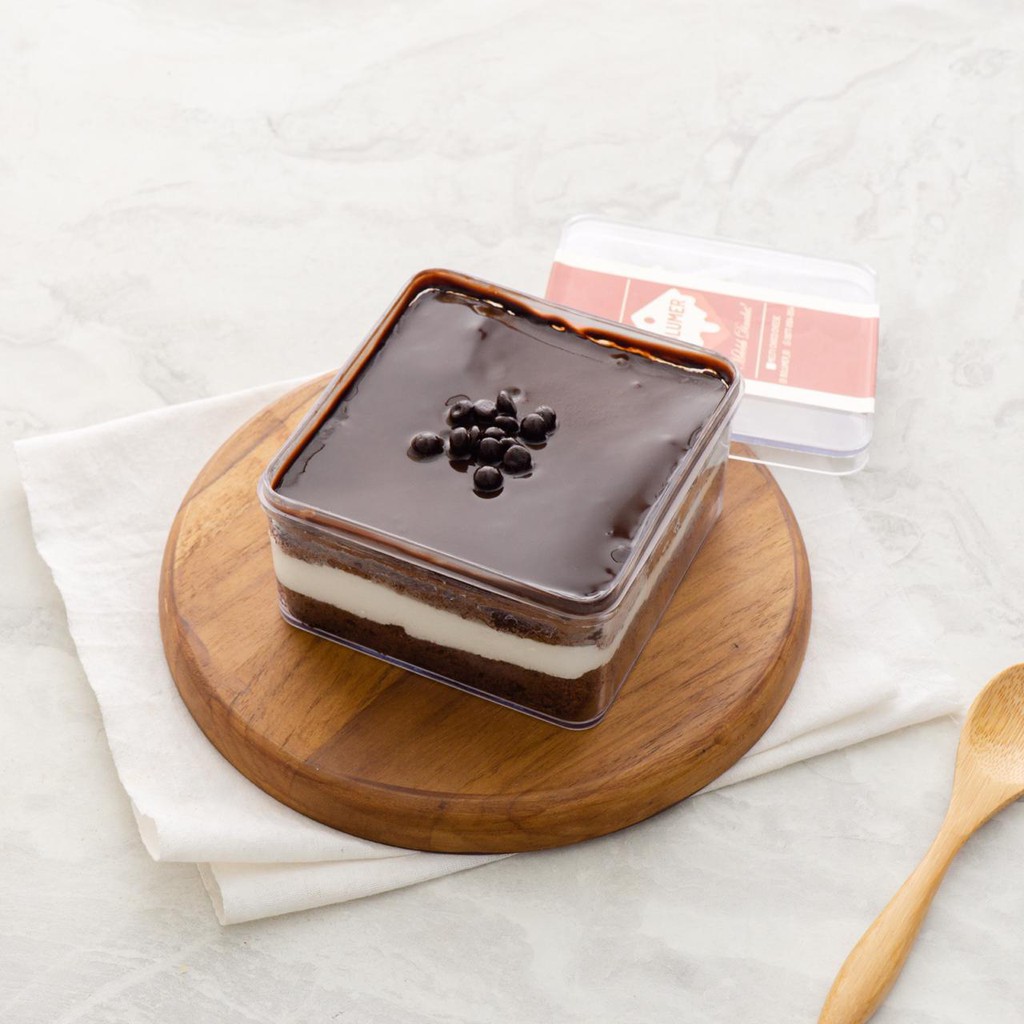 Perpaduan antara Chocolate Ganache, Chocolate Mouse, Cream Cheese, Choco Chips dan Chocolate Cake yang super lembut.
