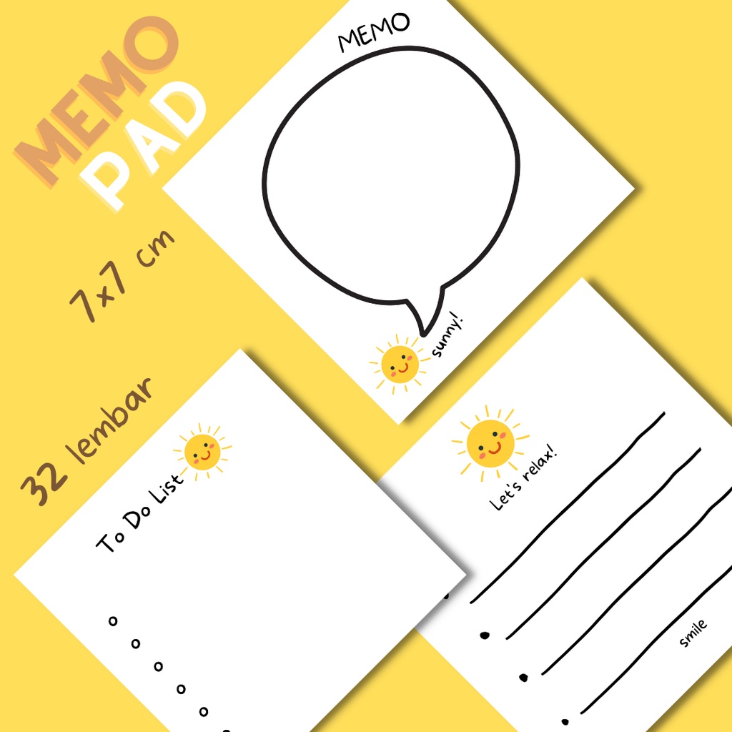 Memo Pad / Note / Non Sticky Notes Motif Sunny