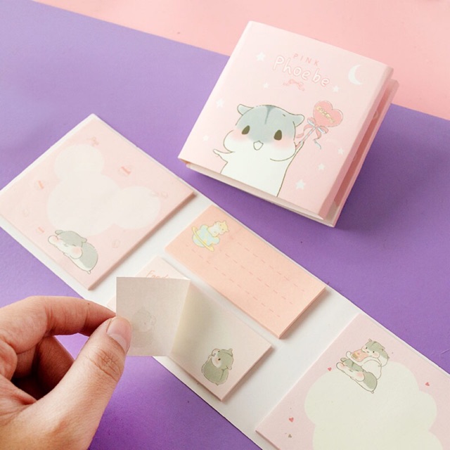 Phoebe adalah nama hamster kecil berpipi tembem ini. Koleksi catatan tempelnya yang berwarna pink akan membantumu mengingat hal penting dan merencanakan aktivitas sehari-hari. Sticky notes berbagai ukuran ini mudah digunakan, praktis disimpan.