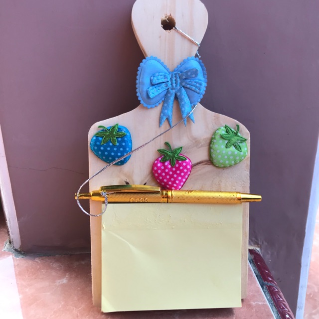 Memo dari kayu tersedia kertas dan pulpen nya