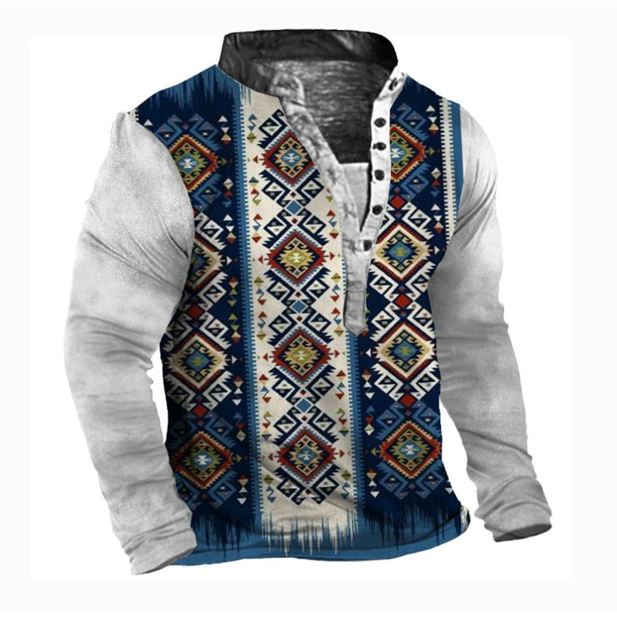 Men' Henley Long Sleeve Aztec Shirt