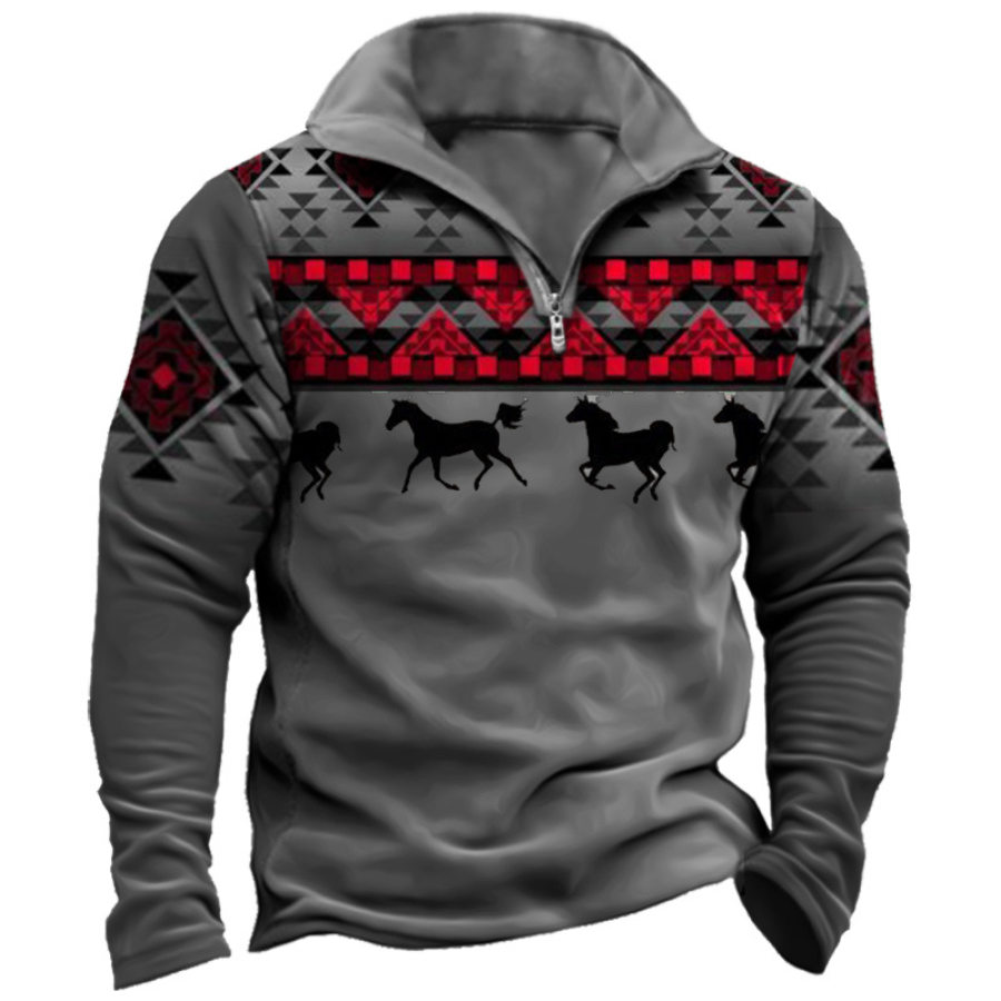 hoodies & sweatshirts,men's 1/4 zip sweatshirt western ethnic pattern print aztec