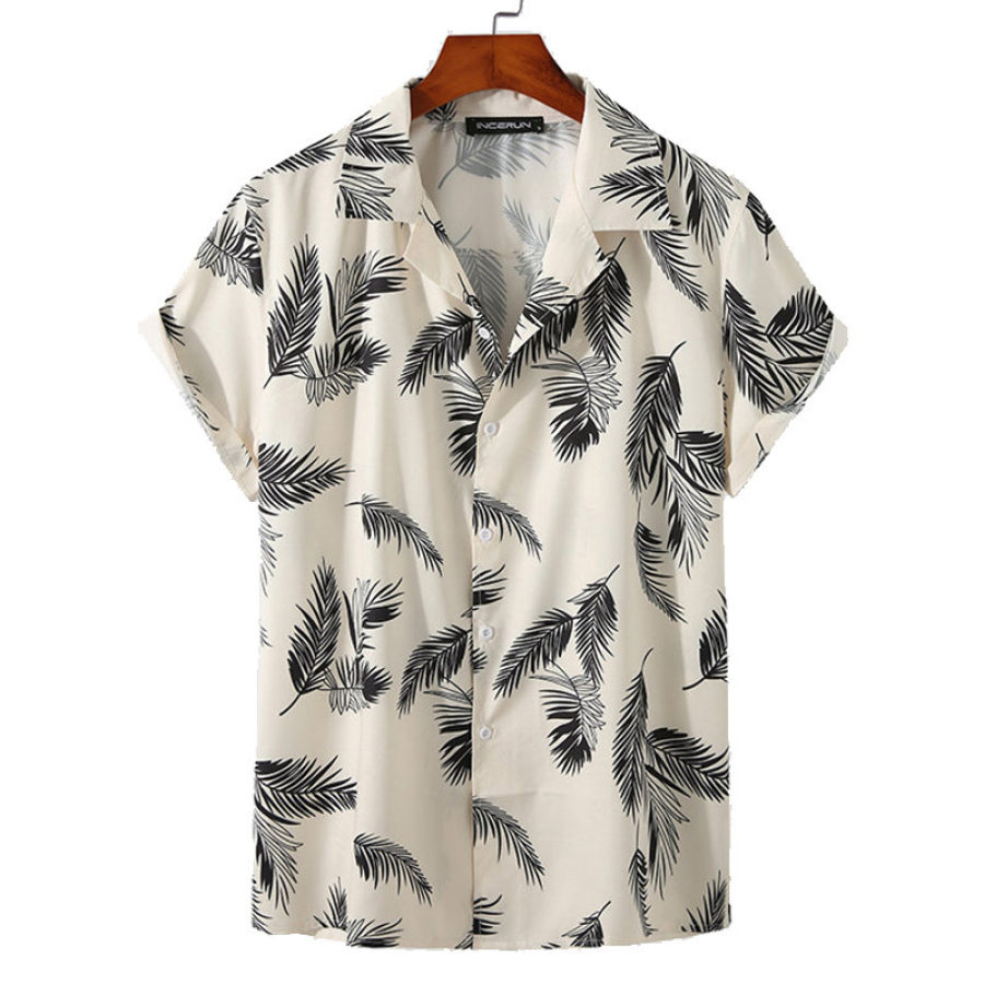 t-shirts,men's all over feather print button revere collar lounge shirt