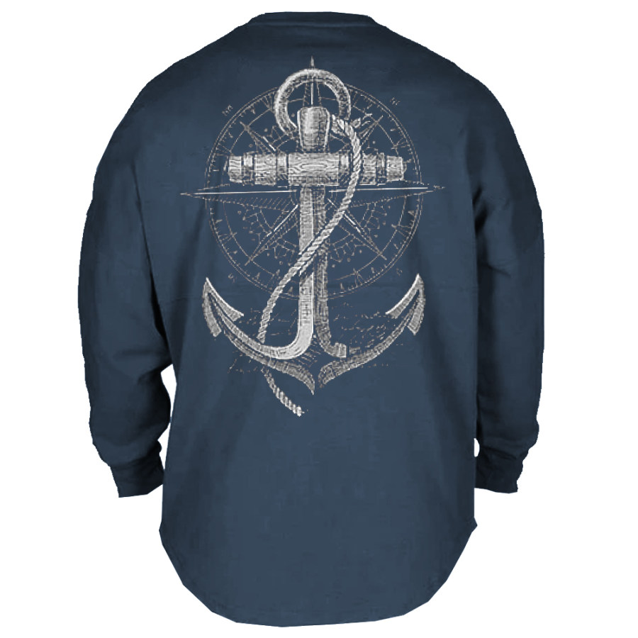 Men's Anchor Compass Graphic Ocean Print Long Sleeve T-Shirt