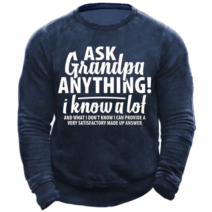 Men's Ask Grandpa Anything I Know A Lot Casual Text Letters Crew Neck Sweatshirt