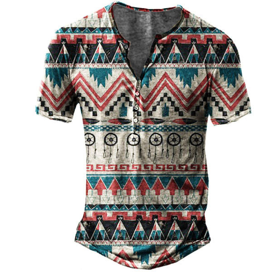 Men's Aztec Henley Short Sleeve T-Shirt