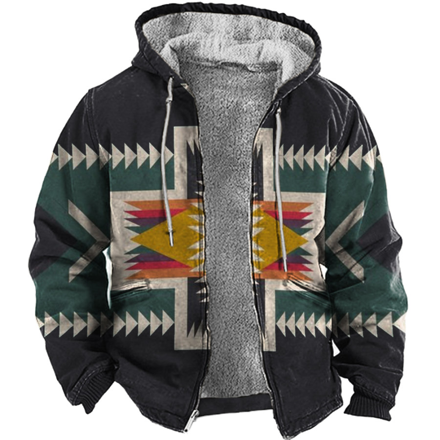 Men's Aztec Quarter Hoodie Color Contrast Winter Tactical Jacket