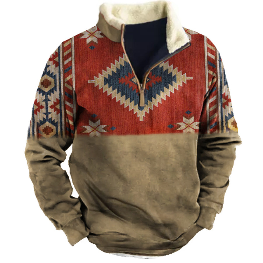 Men's Aztec Quarter Zip Color Contrast Winter Sweatshirt