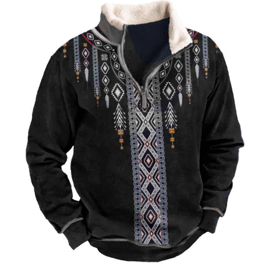 Men's Aztec Quarter Zip Color Contrast Winter Sweatshirt