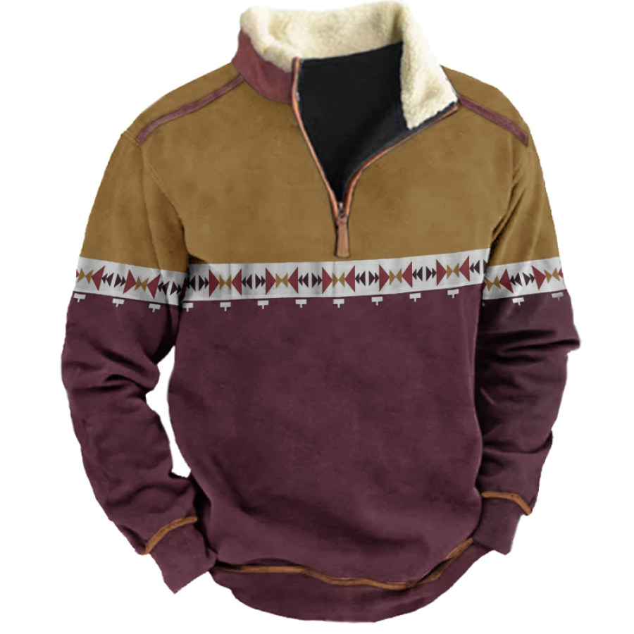 hoodies&sweatshirts,men's aztec quarter zip color contrast winter sweatshirt