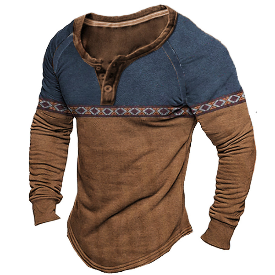 Men's Aztec Western Cowboy Henley Shirt