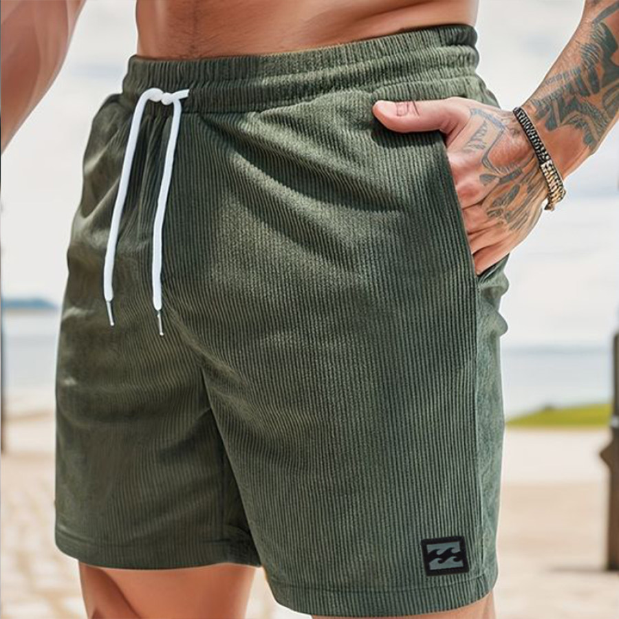 Men's Beach Surfing Printed Corduroy Drawstring Shorts