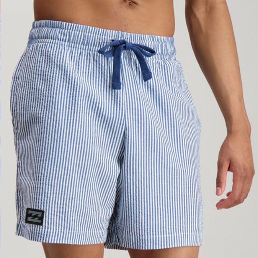 Men's Beach Surfing Stripe Printed Drawstring Shorts